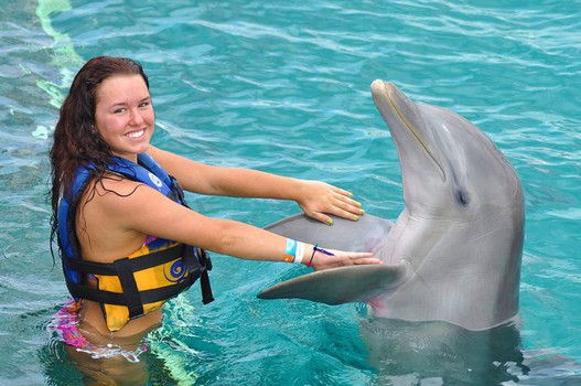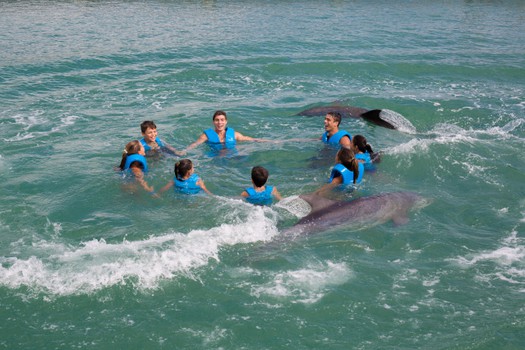 The Primax program allows four people to openly enjoy interactive activities with the dolphins. You can do up to 18 activities like kissing, hugging, dancing and much more!